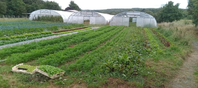 " Installés en maraîchage bio depuis le printemps 2020 en plein cœur de Guenrouët, nous cultivons des légumes de saison à destination des particuliers et des professionnels.