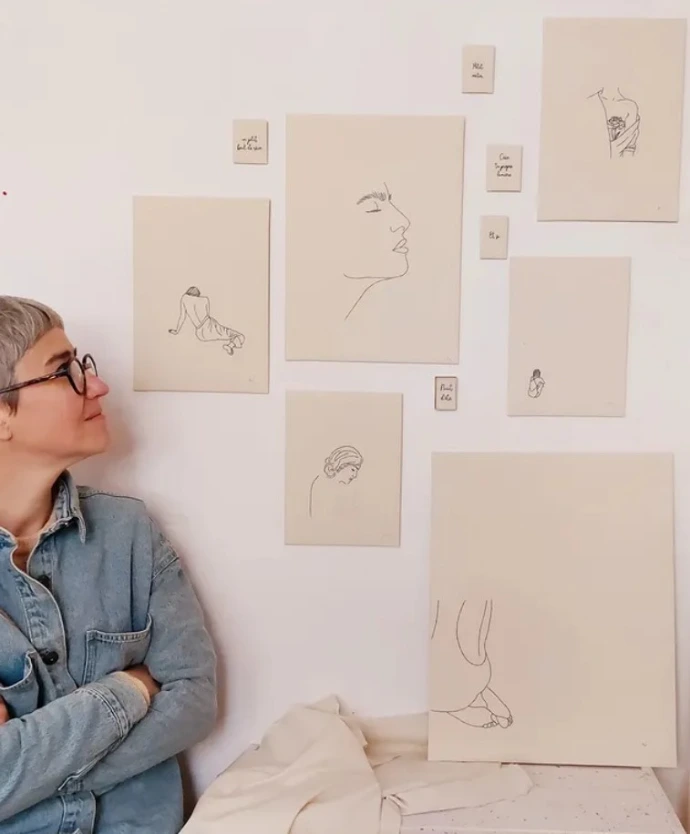" Brodeuse d’art, Aude Herrard crée des œuvres sensibles et contemporaines : silhouettes, mots et mantras prennent vie à travers une broderie fine, minimaliste et contemplative.